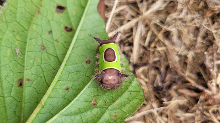 The awareness of its venomous spines immediately made me recoil slightly. Saddleback caterpillars, I reminded myself, are not harmless. Their spines contain a venom that can trigger painful stings, rashes, and irritation upon contact.